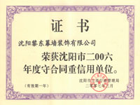 二00四年五月榮獲沈陽市守合重信用單位 |