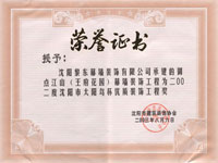 | 2009年獲優(yōu)秀品牌企業(yè) | 2009年度獲沈陽市守合同重信用證書 | 2009年獲哈爾濱工程大學(xué)魯班獎(jiǎng) |