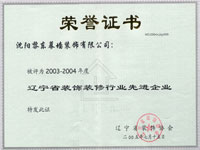 2003-2004年度遼寧省裝飾裝修行業(yè)先進(jìn)企業(yè) |