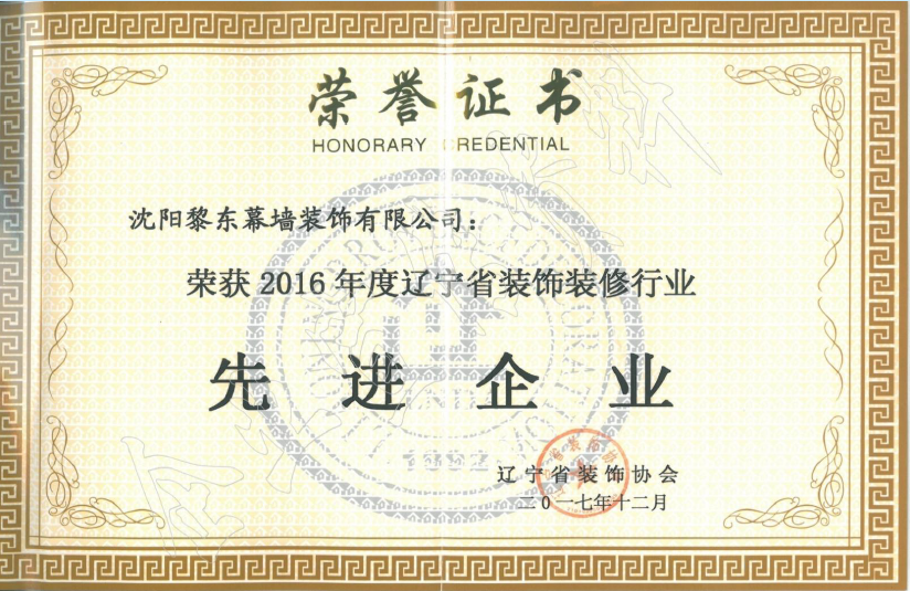 2016年榮獲遼寧省裝飾裝修行業(yè)先進(jìn)企業(yè) |